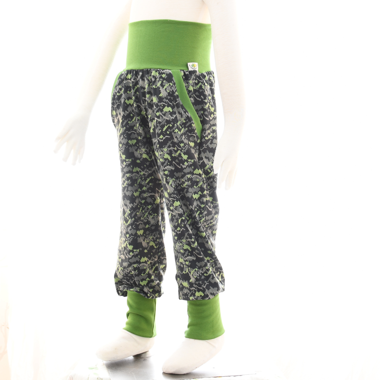 Die Hose besitzt extrabreite Bündchen. Diese verhindern das Rutschen und die Kinder können die “Mitwachshose” auch über einen langen Zeitraum tragen.